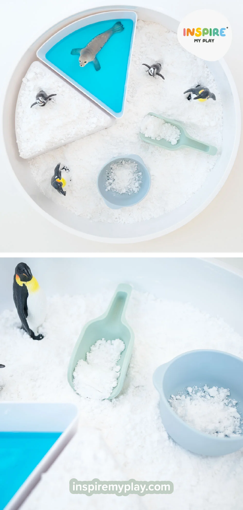 Instant snow powder (that you can buy in the shops and online) is such a fun one to try! Just add water and watch it grow into a soft, fluffy texture — creating a snowy or arctic base.