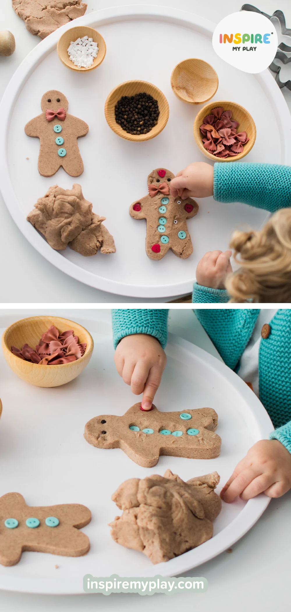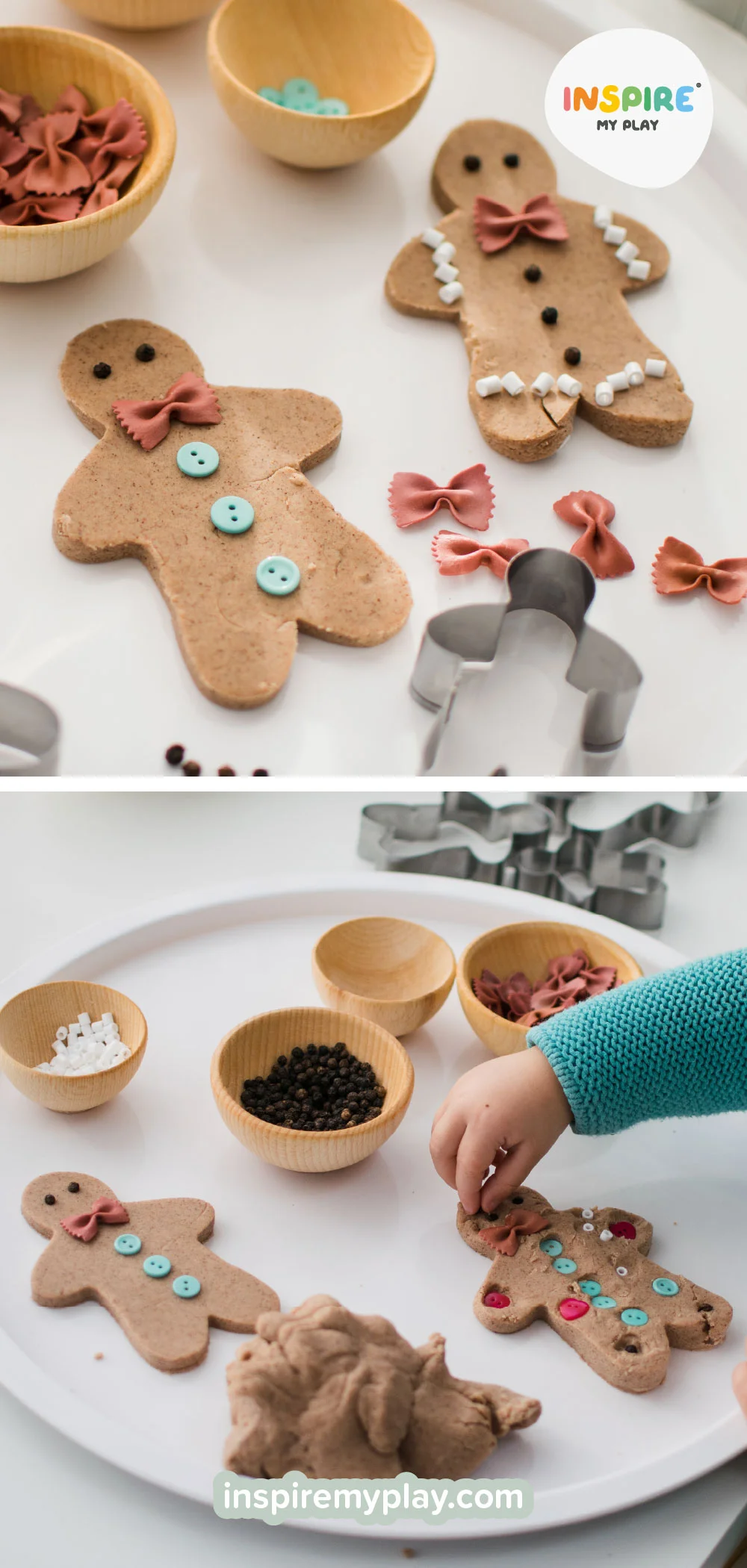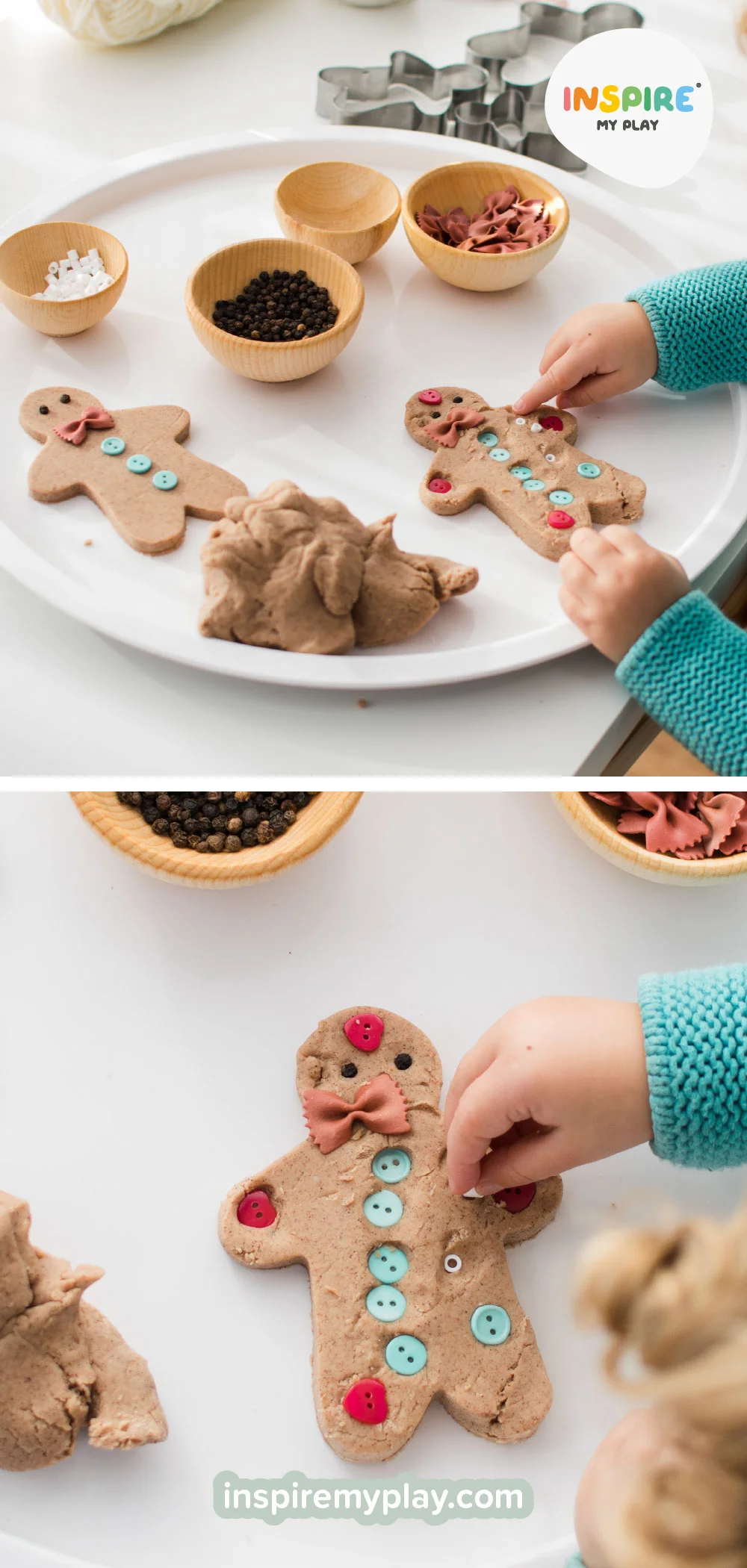 If you try any gingerbread playdough activities, tag us @inspiremyplay. We love seeing your creations and the joy they bring your children.