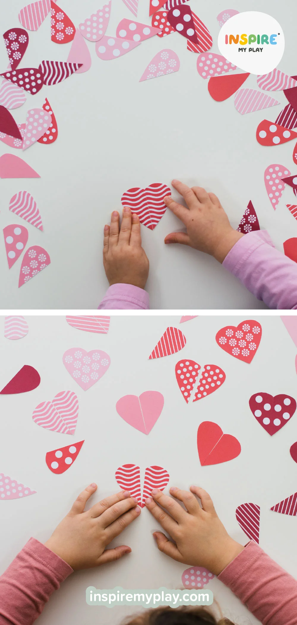 To set up, print the hearts, cut each one in half, and mix them up. Children can then search for the matching halves and piece them back together. For an added layer of excitement, try hiding the pieces around a room or in the PlayTRAY.