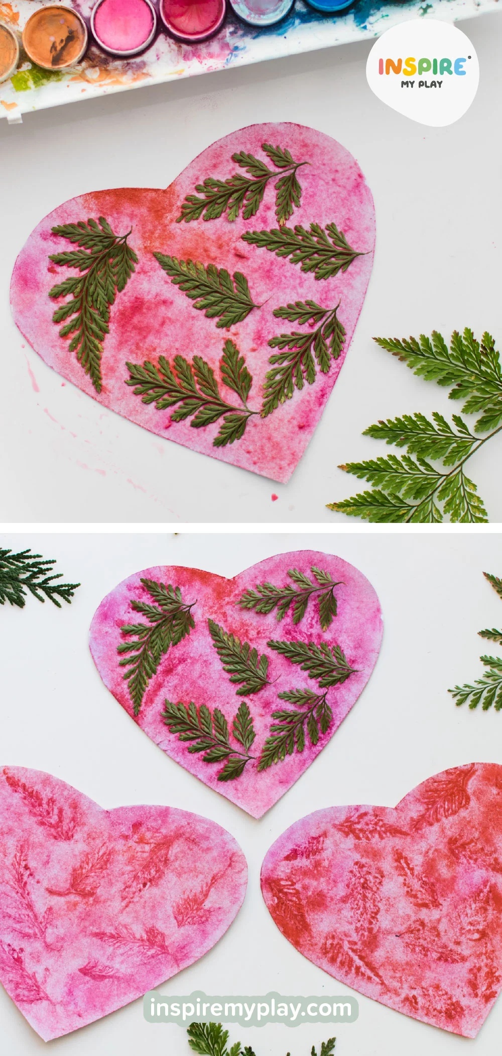 Watercolour nature prints are one of our favourite process-art activities for kids. This printing technique is a favourite of ours and it’s an easy one to do with children, making it perfect for a relaxed, hands-on creative session. It’s a lovely way for little ones to explore natural textures, and you can use almost any plants or flowers you have to hand—ferns work especially well because of their delicate details.