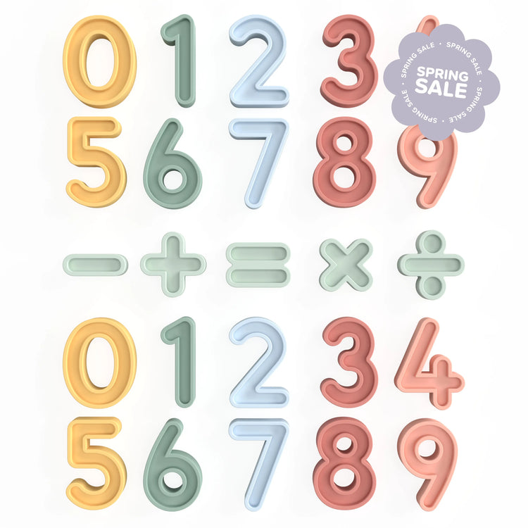 Build early numeracy and problem-solving skills in a playful way with our silicone numbers & operations set. Designed to engage curious minds through sensory-rich, hands-on play. Whether it’s scooping numbers from a water tray or pressing them into playdough, this durable set encourages exploration and creativity with every scoop, press, and pour.