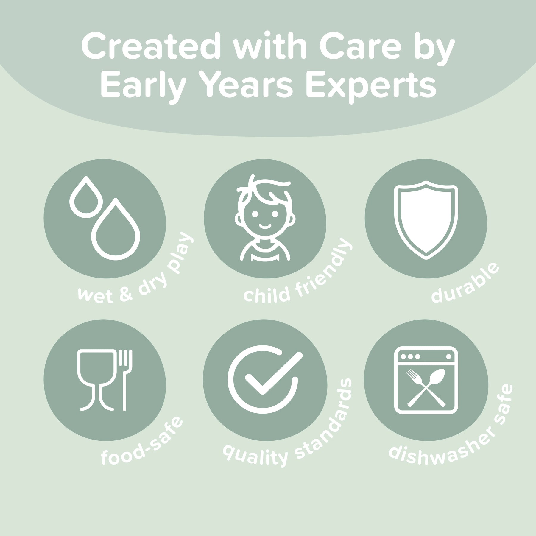 All tools in the set are made from high-quality, non-toxic silicone and BPA-free materials that are soft, safe and durable. They’re also easy to clean and dishwasher safe, giving parents and educators peace of mind as children mix, pour, squish and scoop their way through new sensory experiences.
