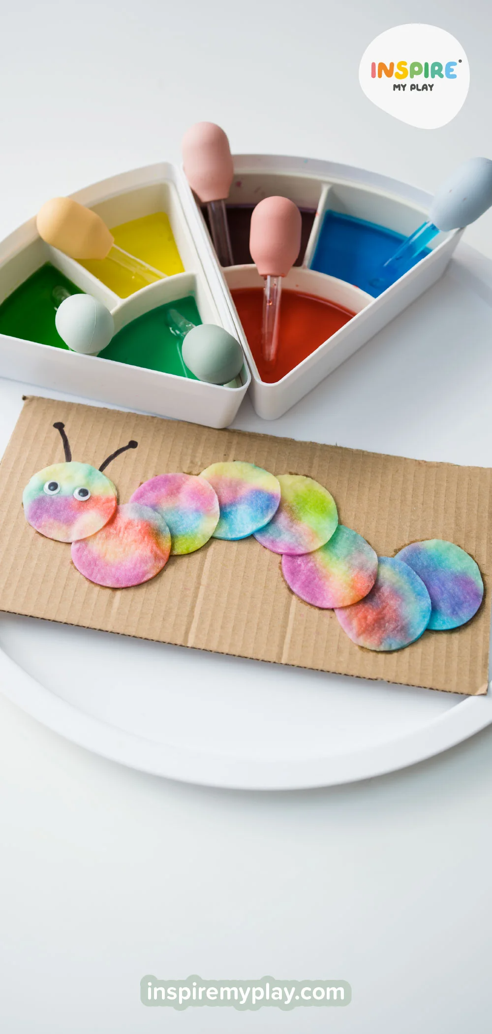 Spring is when caterpillars start appearing in gardens and munching on fresh leaves, and this fun activity lets your little ones get creative by creating their own colourful caterpillar! It combines water play, colour mixing and fine motor skill practice, keeping children entertained and engaged.