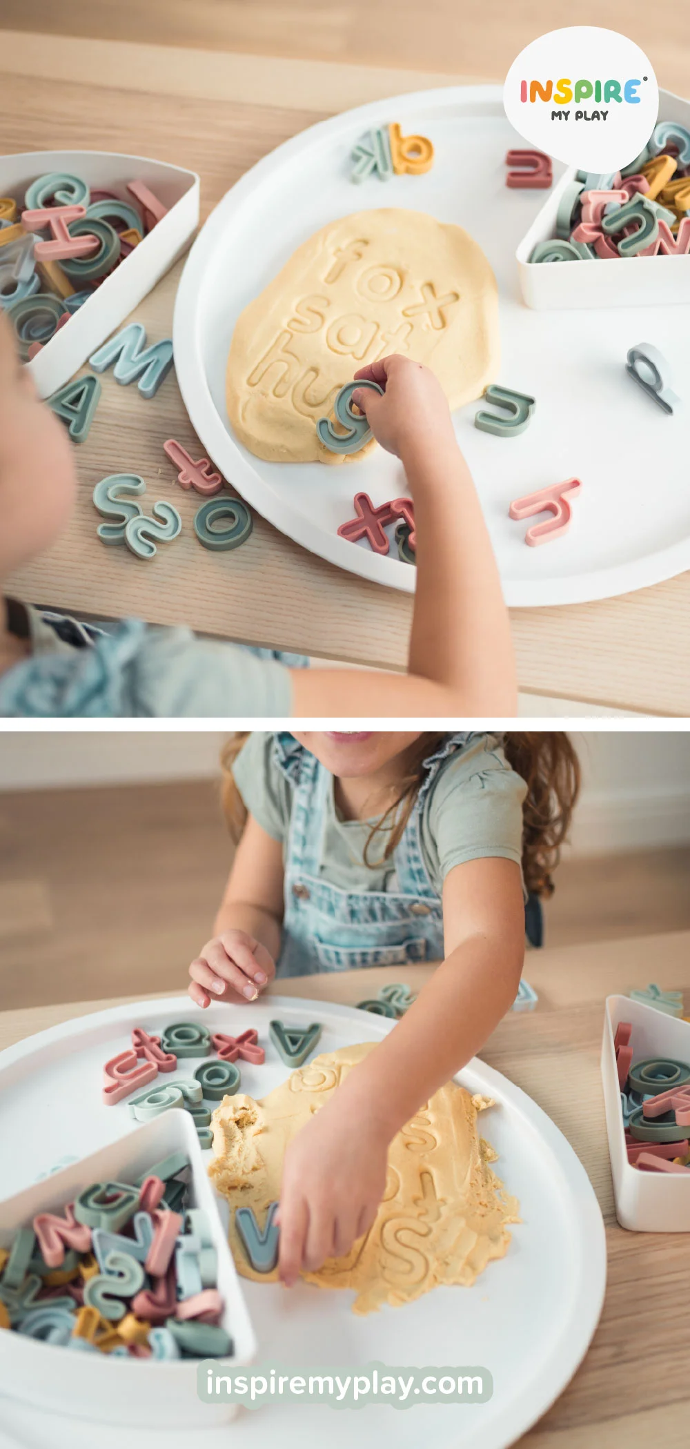 Another fun way to use sand playdough is to explore phonics! It’s perfect for practicing letter sounds and spelling out words. Our silicone Letter Sets make learning letters both fun and interactive — their recessed design allows children to press and imprint letters into playdough, reinforcing letter recognition, hand-eye coordination, and concentration — all through engaging sensory play.
