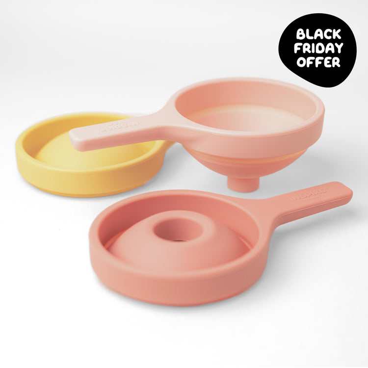 Made from premium-quality, FDA food-grade silicone, our funnels are free from harmful substances like BPA, PVC, and Phthalates. They are toddler safe, ensuring peace of mind even if your little one decides to give them a nibble. Plus, cleaning is a breeze – these funnels are dishwasher safe.