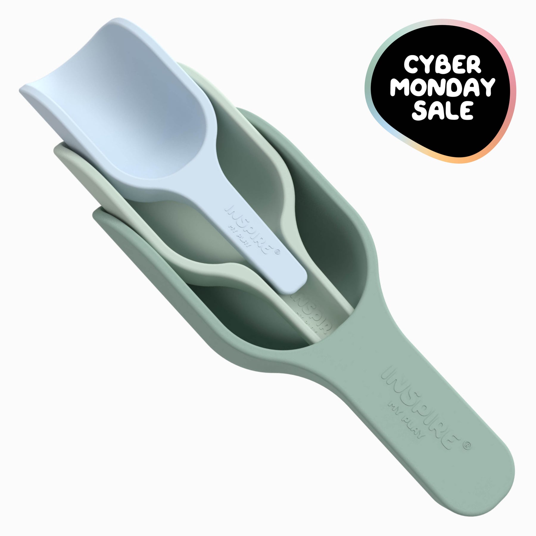 • 3 silicone nesting scoops (including one funnel scoop)