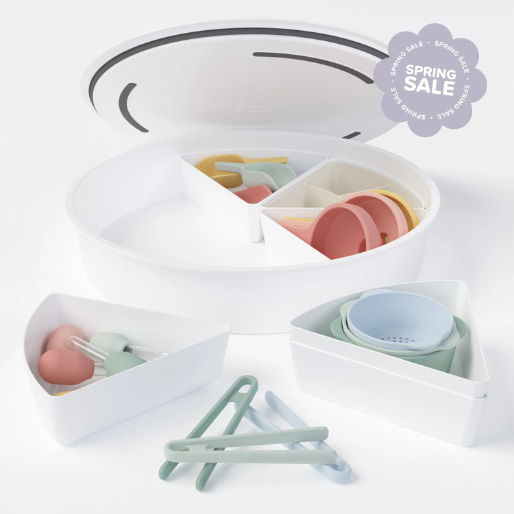 The PlayTRAY is crafted from premium-quality, white food-grade ABS plastic, built for durability and countless sensory adventures. The included tools are made from premium-quality, FDA food-grade silicone, which is soft, safe and easy for children to handle during creative play. Both the PlayTRAY and accessories are BPA-free and phthalate-free, ensuring a safe and stress-free playtime for both children and parents.